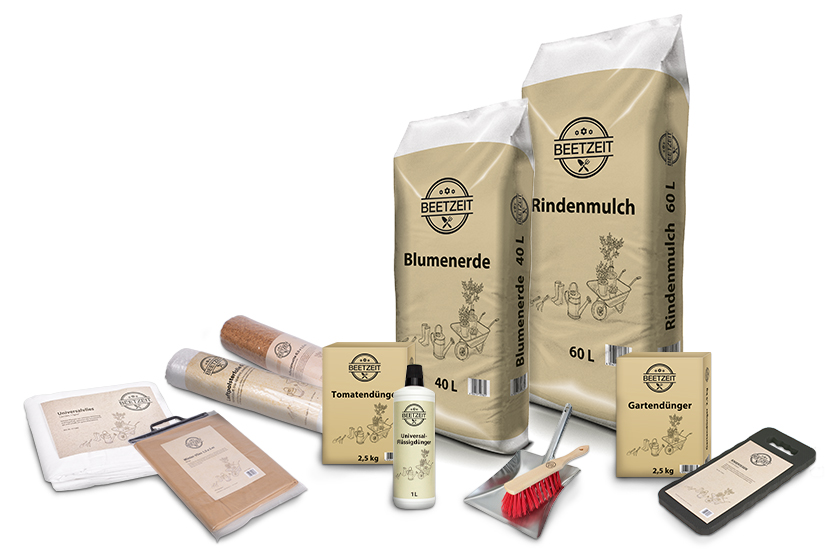 Beetzeit bietet Ihnen ein breites Sortiment zum günstigen Preis. Erde, Dünger, Pflanzenpflege, Gartengeräte & Co. Es bleiben keine Wünsche offen. Nur den grünen Daumen sollten Sie bereits Zuhause haben.